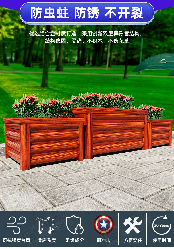 不僅如此,鋁合金材質(zhì)打造的花箱防蟲蛀,防銹不開裂
